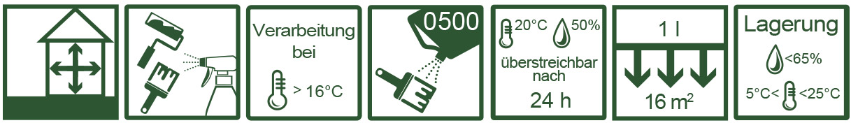 Untergründe müssen trocken (max. 12% Feuchte), saugfähig, schmutz- und fettfrei sein. Abgestufter Schleifaufbau bis P150 / P180 wird empfohlen.