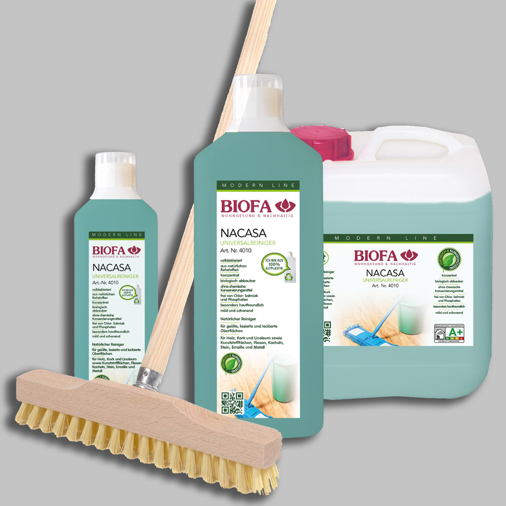 Wir empfehlen die Flächen nach jeder längeren Witterungsperiode mit BIOFA NACASA Universalreiniger 4010 gründlich zu reinigen.