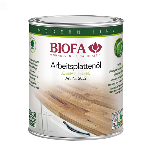 BIOFA Arbeitsplattenöl ist eine Grundierung, Endbeschichtung und Pflege für Tische, Arbeitsplatten und Spielzeug.
